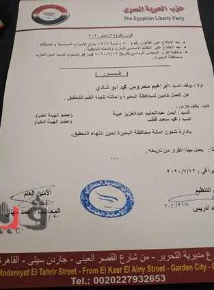 "الحرية المصري" يصدر قرارا بوقف أمين الحزب بالبحيرة وإحالته للتحقيق