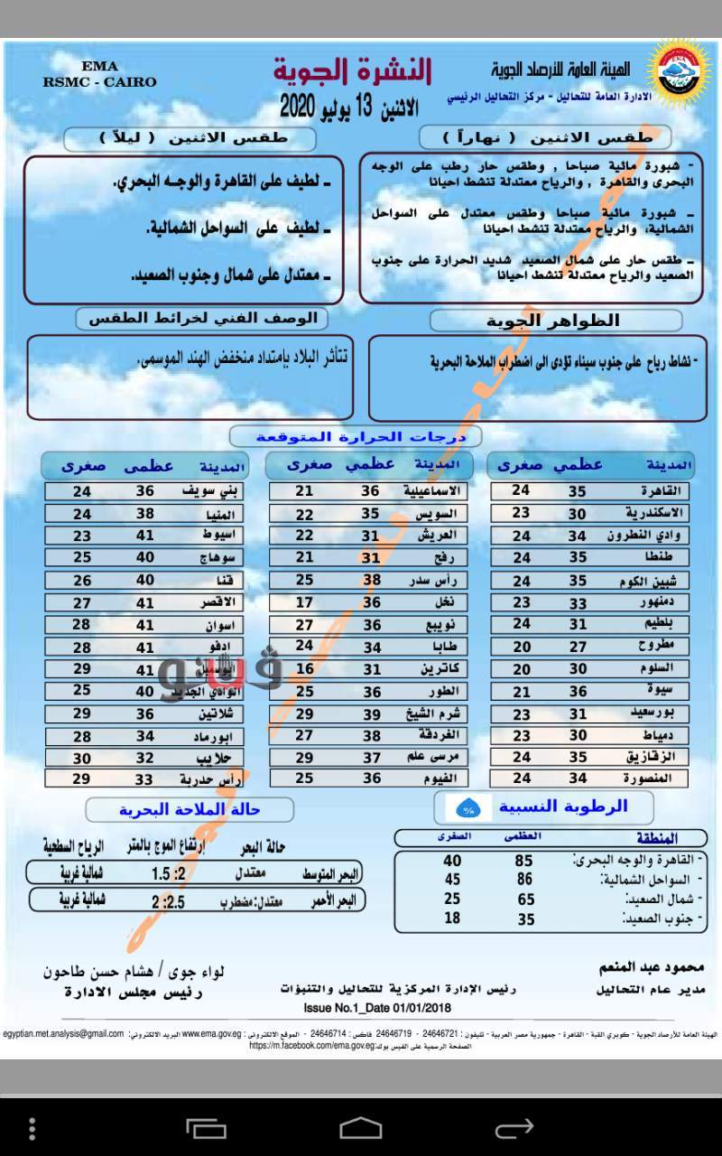 وفيما يلى بيان بدرجات الحرارة:
