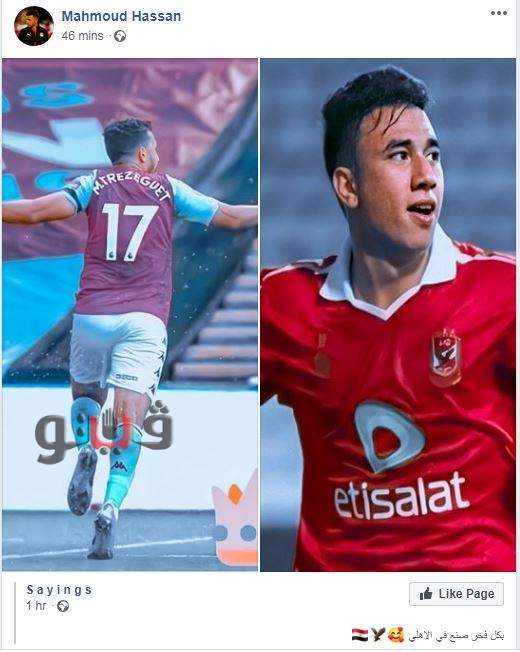ونشر تريزيجيه، عبر حسابه الشخصي على موقع التواصل الاجتماعي "فيس بوك" صورة عقب هدفه مع أستون فيلا وصورة أخرى بقميص الأهلي، وعلق عليها قائلا "بكل فخر صنع في الأهلي".