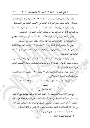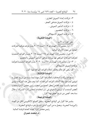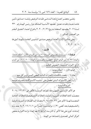 نشرت جريدة الوقائع المصرية في عددها رقم 159، الصادر في 14 يوليو 2020، 3 قرارات للهيئة العامة للرقابة المالية بشأن قواعد حوكمة الشركات العاملة فى مجال الأنشطة المالية غير المصرفية، واعتماد تعديل لائحة النظام الأساسى لصندوق التأمين الخاص للعاملين بمركز البحوث الزراعية ومصنع إنتاج وإصلاحات المدرعات.