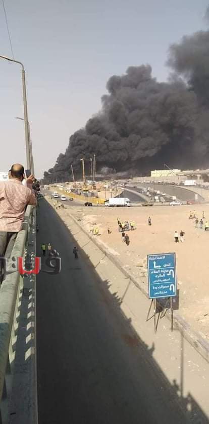 مساعدا وزير الداخلية ينتقلان لموقع حريق خط المواد البترولية بطريق الإسماعيلية الصحراوي