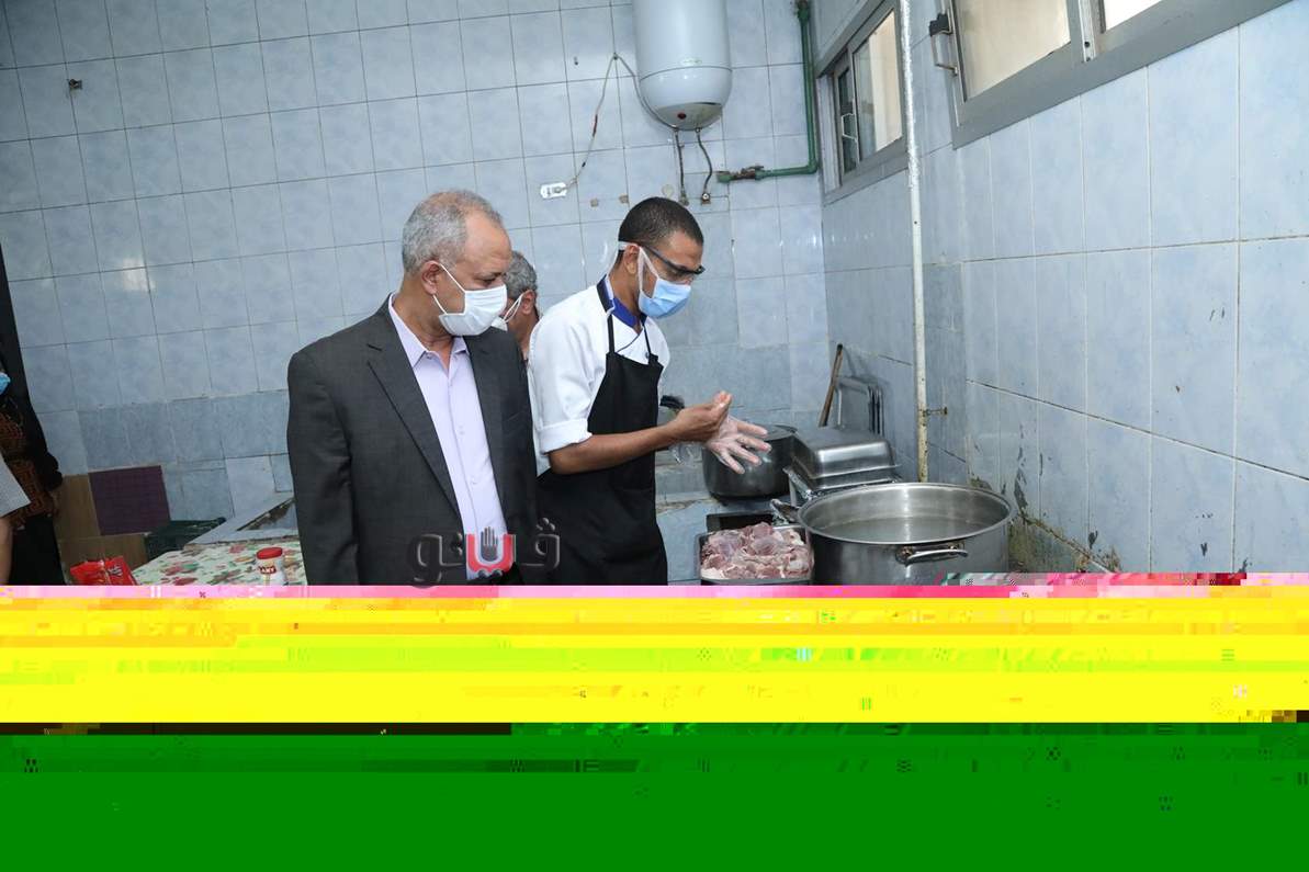 وتفقد شلبى أقسام (الصيدلية – المعمل – المطبخ – المخازن)، وتم التأكد من قبل أعضاء اللجنة من توزيع الوجبات