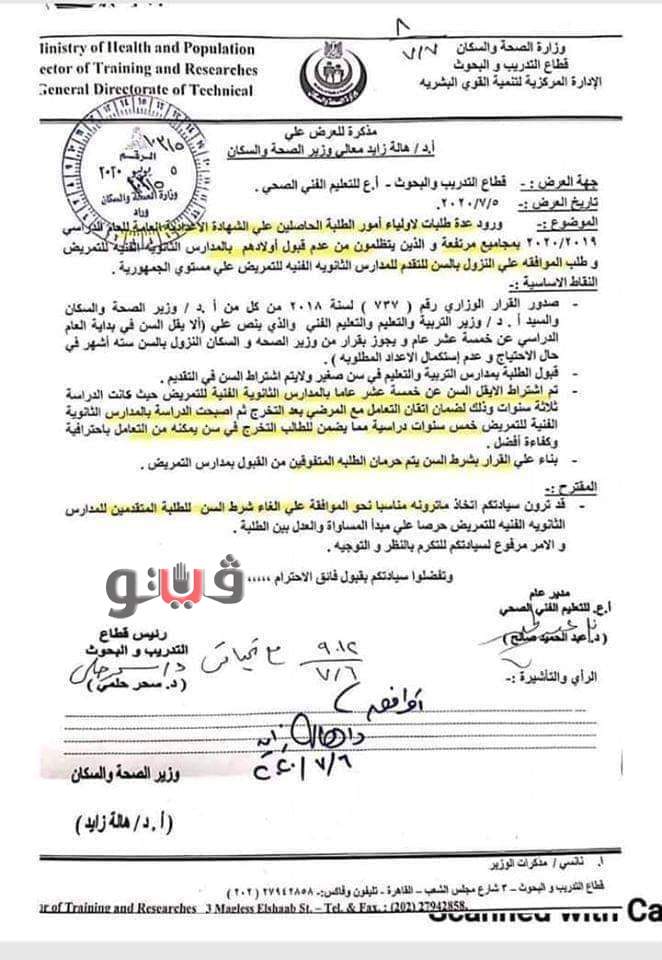 جاء ذلك بناء على تظلمات الأهالي أولياء الأمور للطلبة الحاصلين على الشهادة الإعدادية بمجموع مرتفع وعدم قبول أولادهم في مدارس الثانوي للتمريض بسبب تاريخ الميلاد.