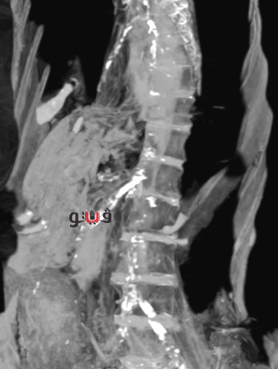 فأثبت فحص الأشعة المقطعية لـ ”مومياء المرأة غير المعروفه إىه” أنها عانت من تصلب في شرايين القلب التاجية الأيمن والأيسر وكذلك شرايين الرقبة وشريان الأبهر البطني والحرقفي، وكذلك شرايين الطرفيين السفليين والساقين.