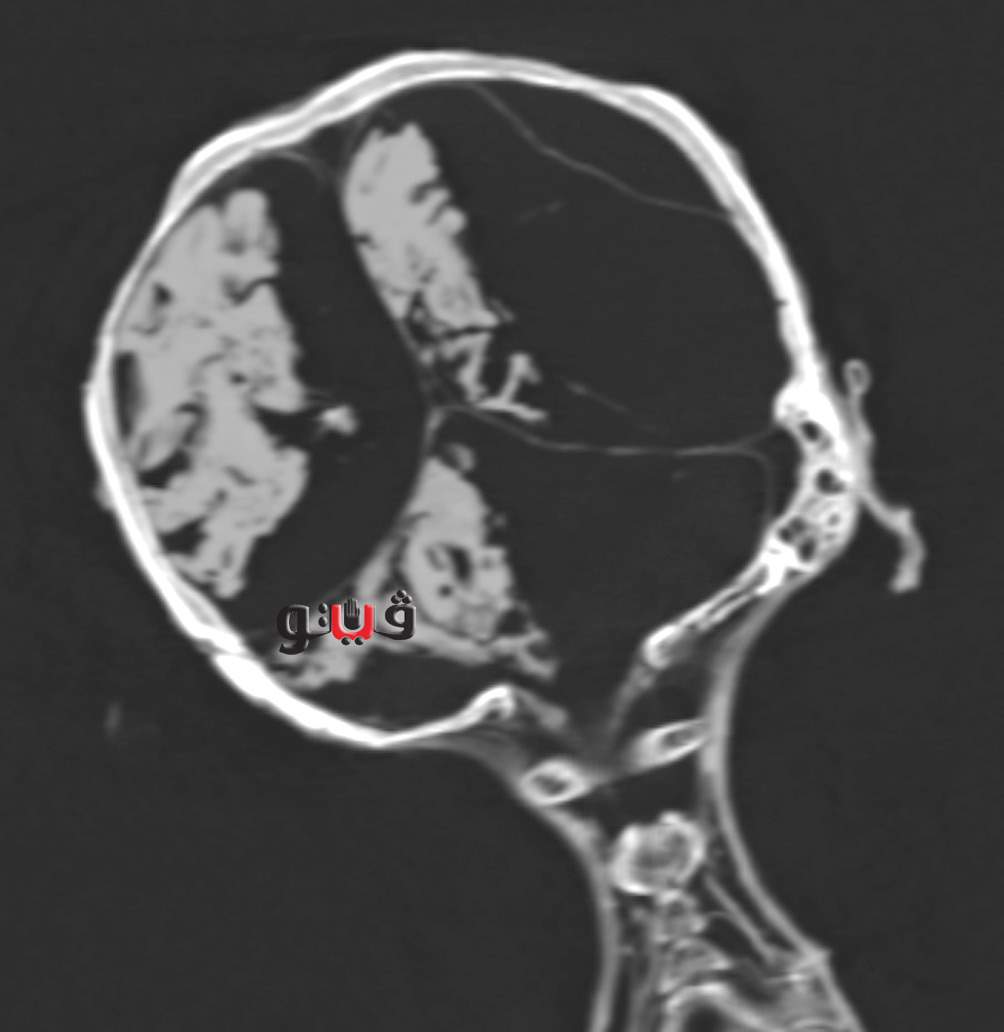 وأظهرت صور فحص الأشعة المقطعية ان المحنطين لم يستخرجوا مخ المومياء حيث لا يزال يرى المخ بداخل تجويف الجمجمة و لكنه يميل إلى الجانب الأيمن و ذلك لوضعية الجسد على هذا الجانب عند الموت و بعد التحنيط.
