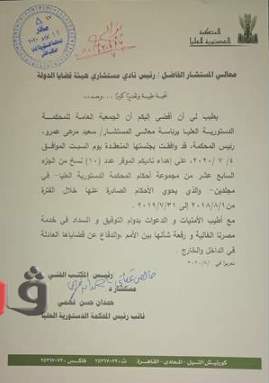 وذكر الخطاب المرسل من المحكمة الدستورية العليا للنادى، والتى حصلت "فيتو" على نسخة منه، أن تلك الأحكام خلال الفترة من عام ٢٠١٨ وحتى نهاية ٢٠١٩ .