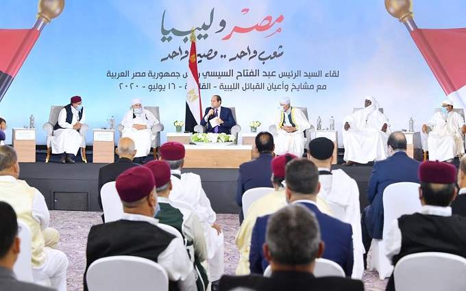 وأكد الرئيس السيسى أن حضور القبائل الليبية إلى بلدهم مصر فى هذا التوقيت يبعث رسالة للعالم مفادها وحدة مصير البلدين.