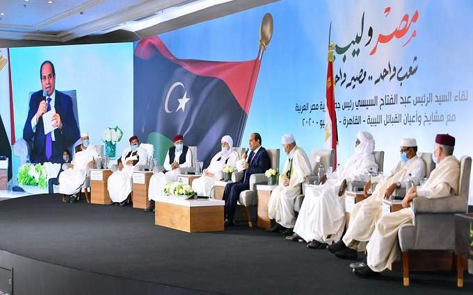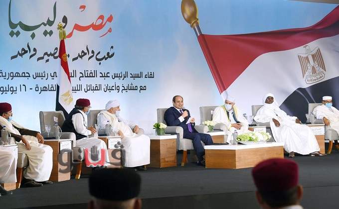 وقال الرئيس السيسى، إن مصر ترفض أن تتحول ليبيا لملاذ آمن للخارجين عن القانون، داعيًا أبناء القبائل الليبية إلى الانخراط فى جيش وطنى موحد وحصر السلاح فى يد دولة المؤسسات دون غيرها.
