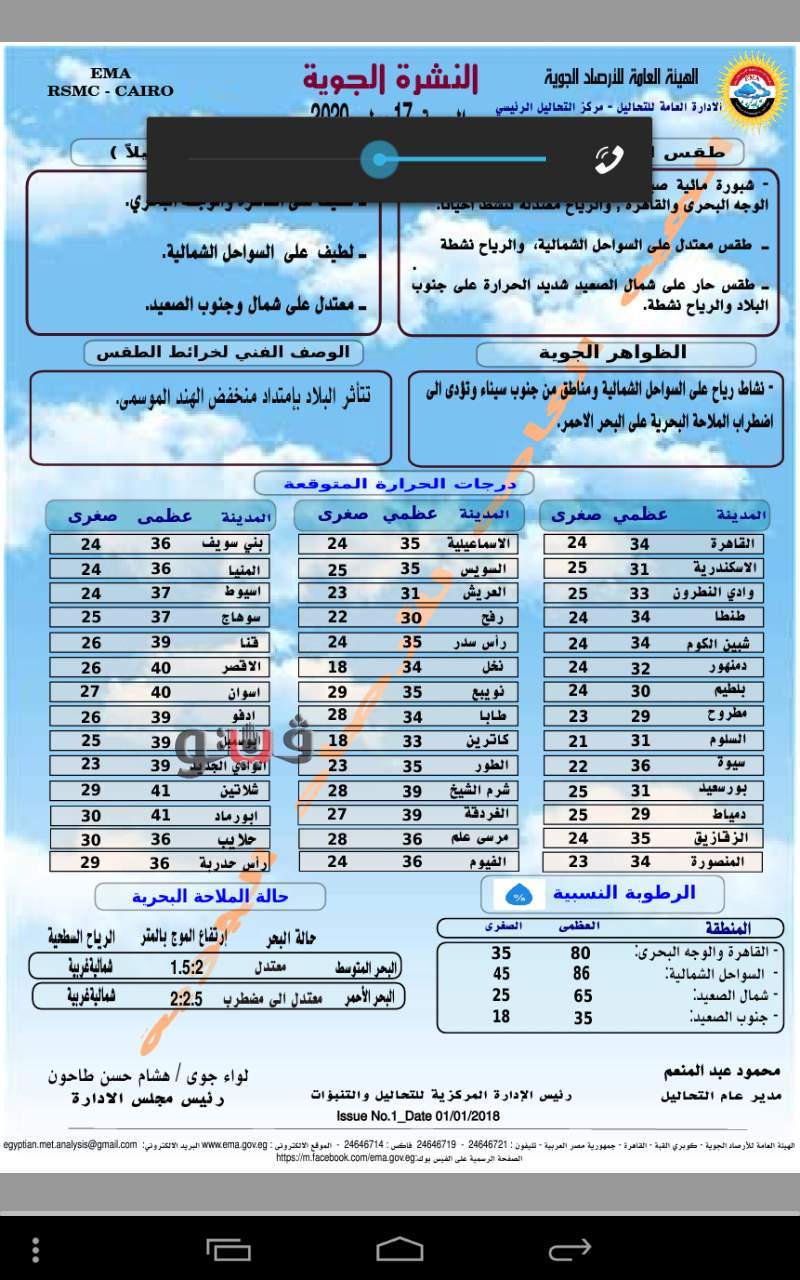 وفيما يلى بيان بدرجات الحرارة المتوقعة اليوم على مدن ومحافظات مصر..