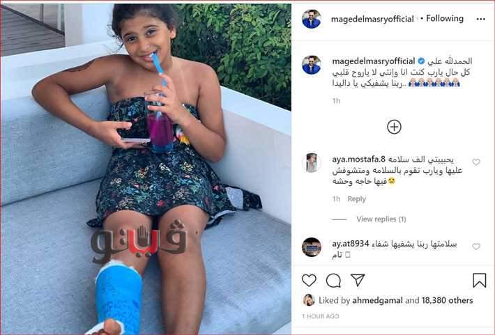 ونشر ماجد عبر حسابه الرسمي بموقع الصو رالشهير "انستجرام" صورة لداليدا وهي تضع رجلها بالجبس الطبي وعلق عليها كاتباً: "الحمد لله على كل حال يارب كنت انا وإنتي لا ياروح قلبي .. ربنا يشفيكي يا داليدا".