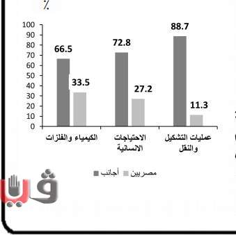 وقالت النشرة ان البراءات الممنوحة فــى مجــال عمــليات التشكيل والنقل جاءت بـ 106 بـراءة اختراع بنسبة 14.1٪ ( 11.3 ٪ للمصريين ، 88.7٪ للأجانب).