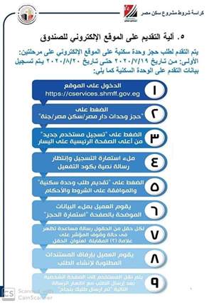 - فتح باب سداد مقدمات جدية الحجز المطلوبة للمشروعات الثلاثة، وإتاحة الاطلاع على كراسة الشروط المُرفقة بالموقع الالكتروني بالإضافة إلى تسجيل البيانات الخاصة بصاحب الطلب وتقديم طلب حجز الوحدة السكنية لمدة شهر بداية من يوم الأحد الموافق 19 /7 /2020 حتى الخميس الموافق 20 /8 /2020. وتفاصيل كراسة الشروط كالتالى: