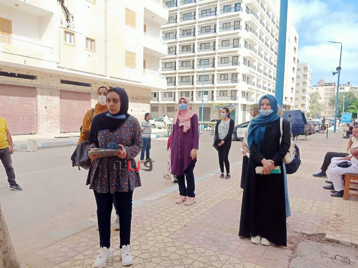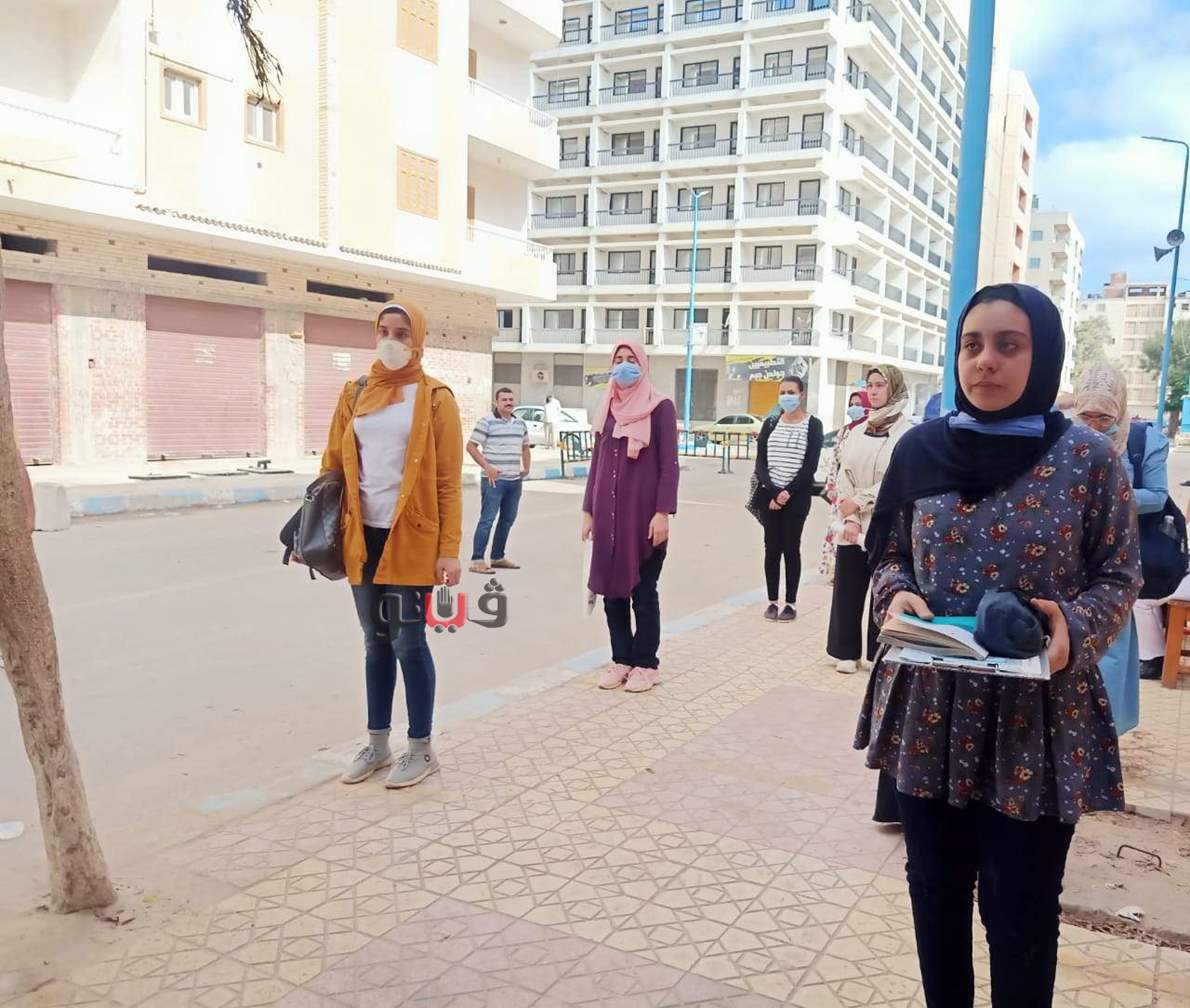 وحرص عدد من الطالبات بارتداء الكمامات والفيس شيلد وسط تنظيم بينهن بالتباعد الاجتماعي أمام اللجان تمهيدا للدخول.
