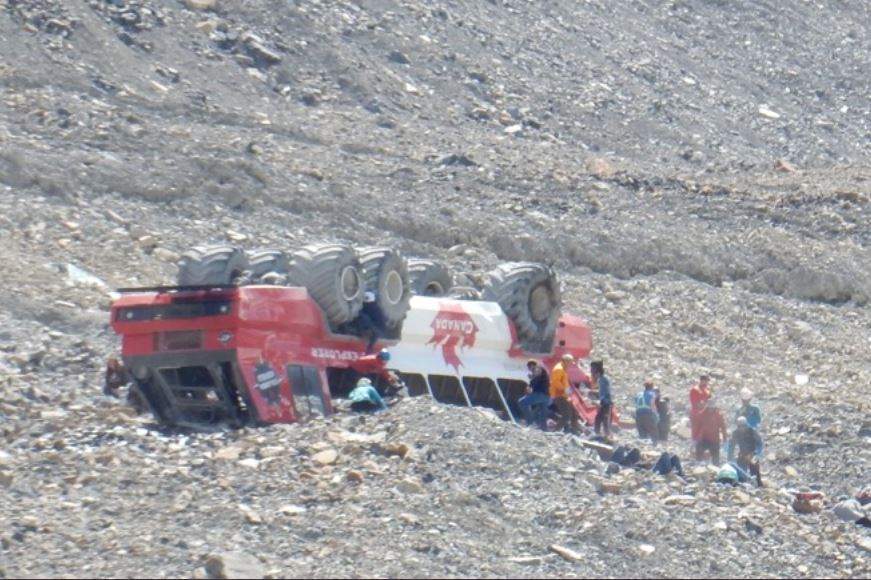 نيوز»، فأن الحافلة السياحية انقلبت وهي في طريقها إلى جبل جليدي في متنزه جاسبر