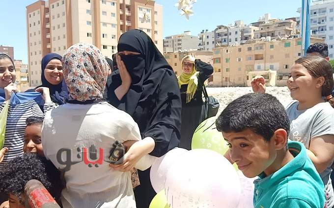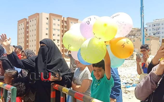 أسرة طالبة بمطروح تستقبلها ببالونات المواد الدراسية والورد عقب انتهاء الامتحان