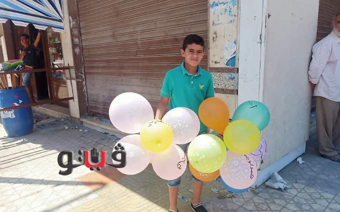 وقامت أسرة الطالبة خلود خميس العبيدي طالبة الثانوية العامة شعبة علمي علوم بكتابة المواد الدراسية علي البالون بالإضافة إلى جلب الورود وذلك لإسعاد الطالبة عقب الانتهاء من الامتحان في مادة الجيولوجيا حيث استقبلت الأسرة الطالبة بالورود والزغاريد والأحضان أمام اللجنة.