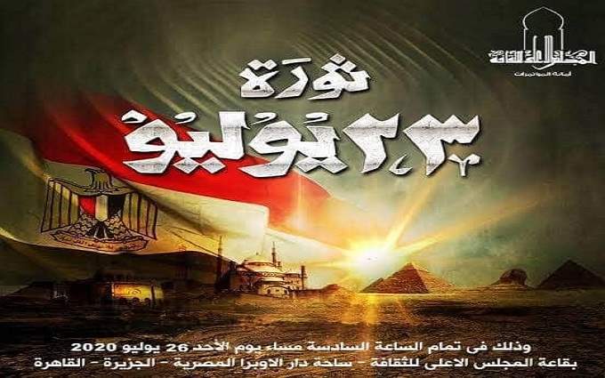 وتأتي الندوة في إطار الاحتفال بذكرى ثورة 23 يوليو 1952، وذلك في تمام الساعة السادسة مساء يوم الأحد المقبل الموافق 26 يوليو الحالي بقاعة المجلس.