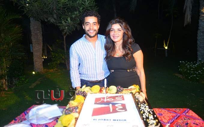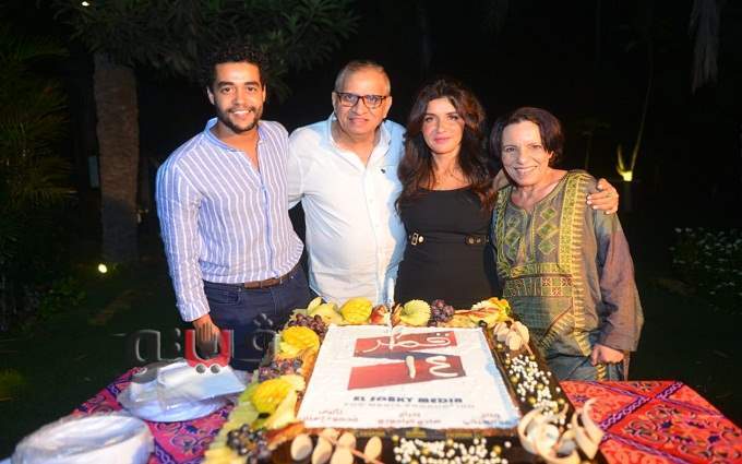 وحضر الاحتفال ابطال أولى حكايات "قمر ١٤" النجمة غاده عادل و الفنان خالد انور والفنانه عارفه عبد الرسول ومخرج العمل هادي الباجوري والمنتج احمد السبكي و مدير الشركه احمد عاطف والتفو الجميع حول تورته الاحتفال والتقاط الصور التذكاريه معها.