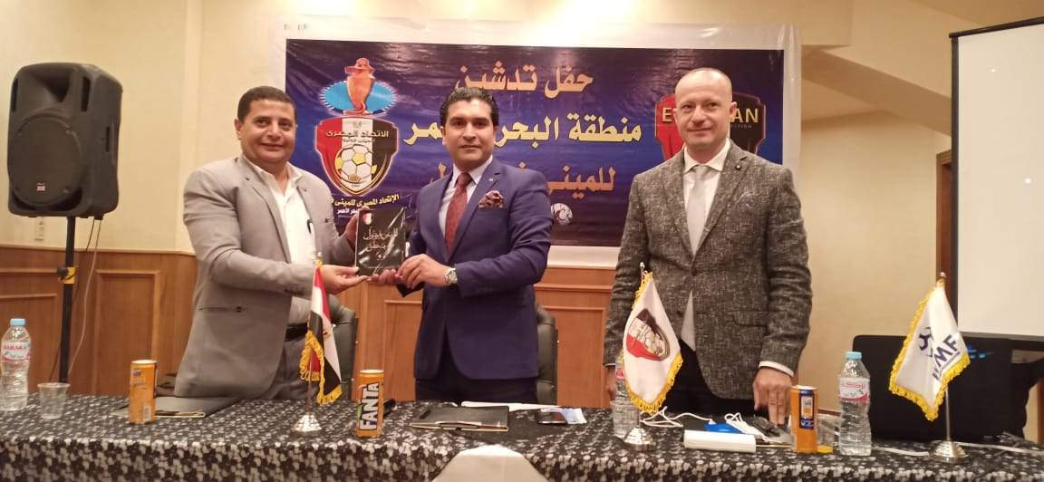 وأشاد رئيس الاتحاد أحمد سمير بالمجهود المبذول من طارق محيى الدين رئيس المنطقة ورئيسة عبد الله المدير التنفيذى للمنطقة وأعضاء مجلس إدارة المنطقة على الجهد المبذول فى حفل تدشين المنطقة بهذة الصورة المتميزة كما توجه رئيس الاتحاد بخالص التحية للواء عمرو حنفى محافظ البحر الأحمر راعى الشباب والرياضة بالمحافظة وكذلك كافة الحضور فى حفل التدشين، وقام بإهداء نسخة من الإصدار الأول لمجلة الاتحاد المصرى للمينى لفراج عبد المقصود مدير عام مديرية الشباب والرياضة بالمحافظة.