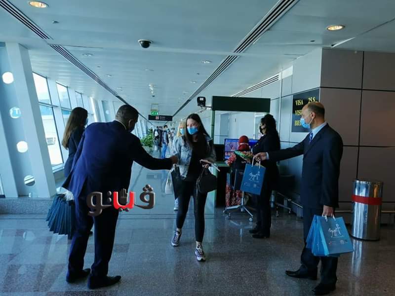 وحرص الطيار جمال السيد نائب مدير مطار الغردقة الدولي وفريق العلاقات العامة بالمطار علي استقبال الركاب بالورود والهدايا التذكارية وذلك احتفالا باستئناف حركة الطيران القادمة من دولة صربيا .