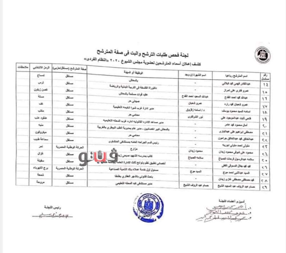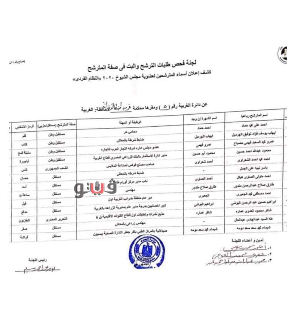 بالأسماء .. القائمة النهائية لمرشحي مجلس الشيوخ بالغربية