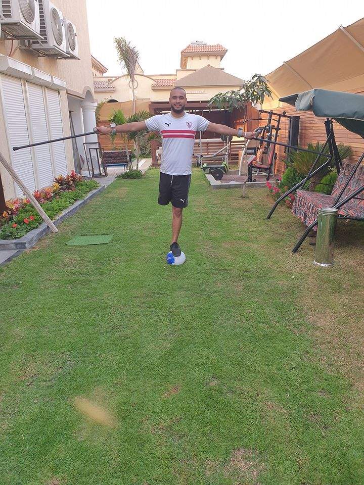 كما نشر اللاعب صورة وهو يقف علي الكرة معلقا عليها " صباح التفاؤل".