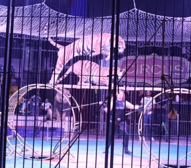 واختتم البرنامج بفقرة استعراض الحيوانات المفترسة لمدربة الأسود والنمور الفنانة لوبا الحلو، بإشراف الفنان أشرف شعبان مدير شعبة القاهرة، وإخراج الفنان محمد النوبى مدير شعبة سيرك الجيزة.
