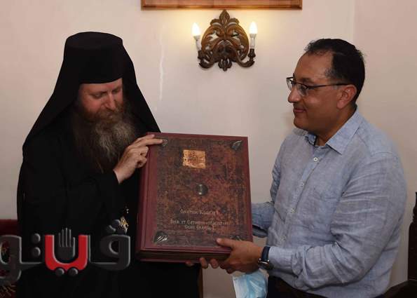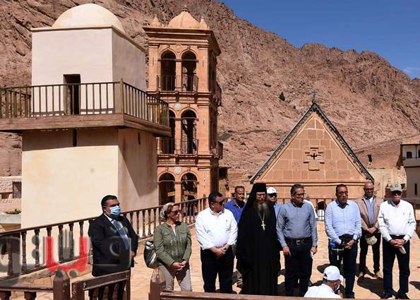 زار الدكتور مصطفى مدبولي، رئيس مجلس الوزراء، والوفد المرافق له، دير سانت كاترين، وتفقد المنطقة المحيطة به، حيث بدأت الزيارة بترحيب حافل من الرُهبان، الذين اصطحبوا رئيس الوزراء ومرافقيه، في جولة موسعة بالدير.