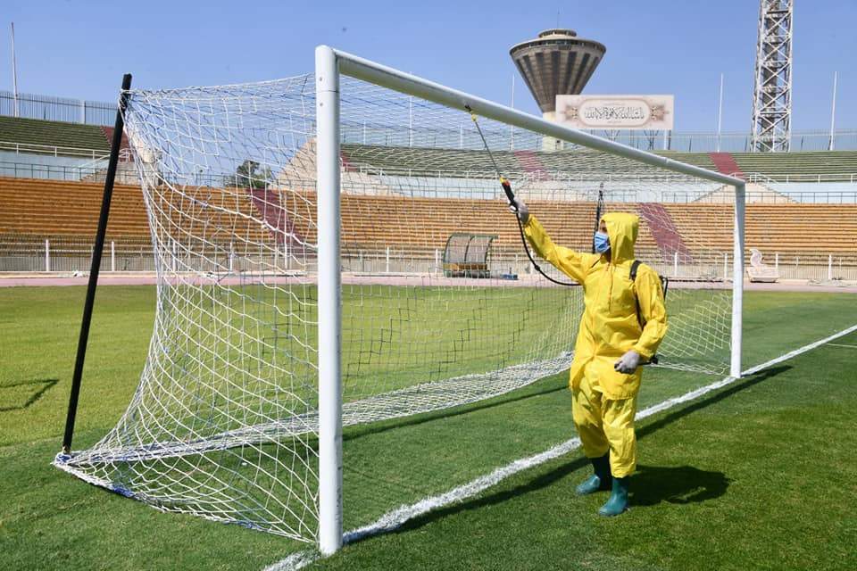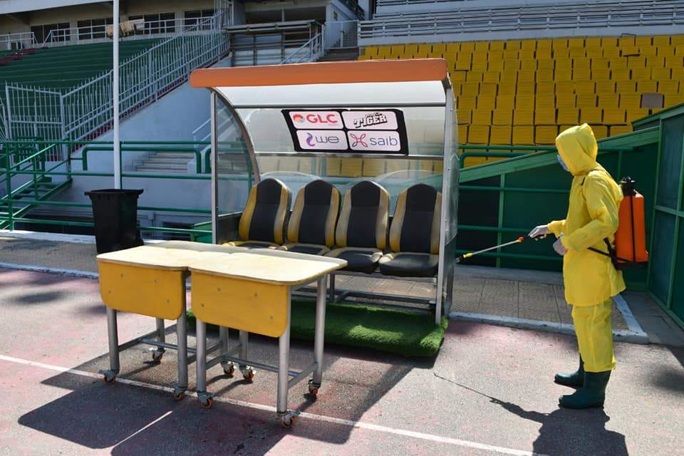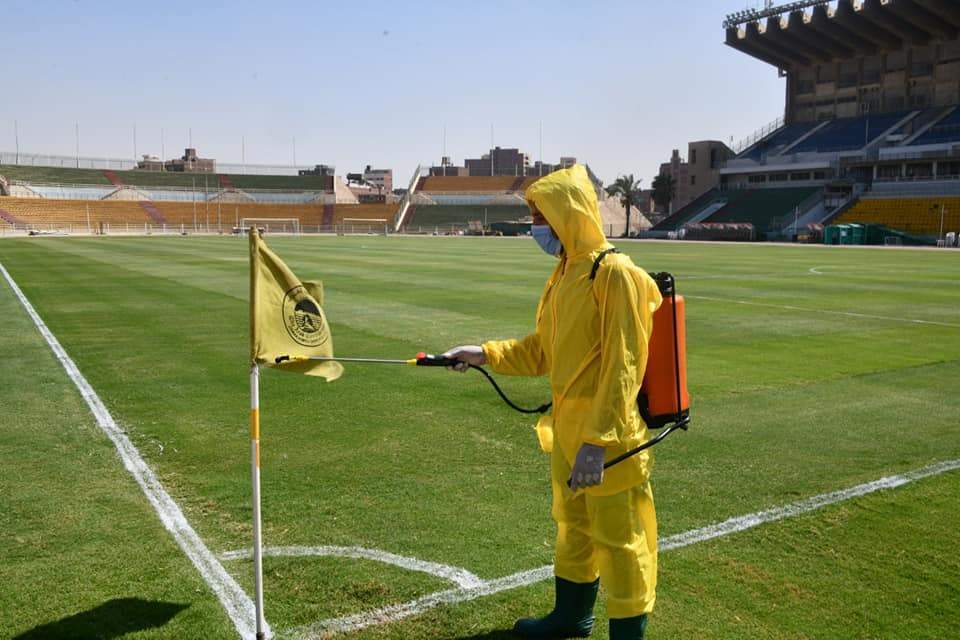 تعقيم وتطهير ملعب المقاولون وغرف الملابس قبل ودية أسوان | صور
