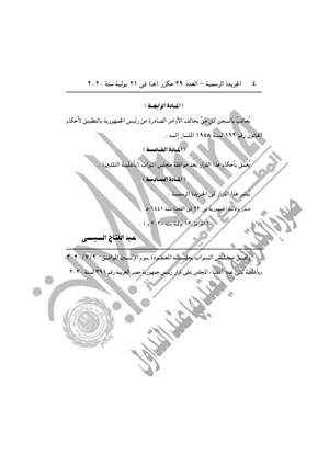 الجريدة الرسمية تنشر قرار رئيس الجمهورية بمد حالة الطواريء