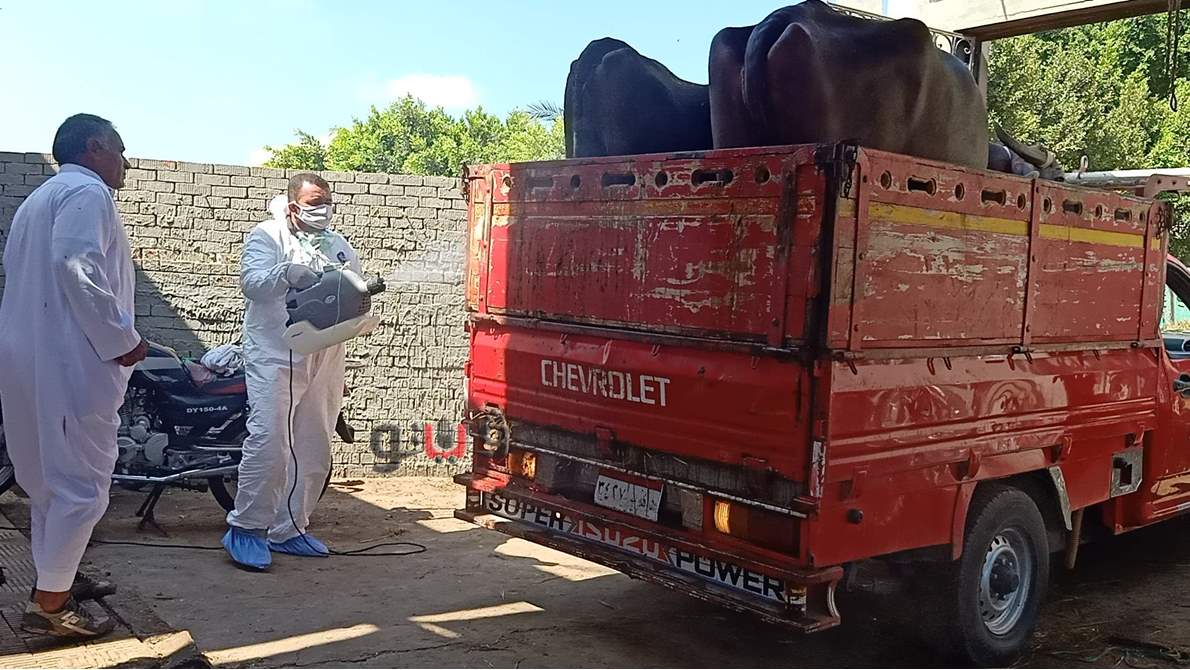 وأوضح الدكتور ناجي عبد الرحمن مدير مجزر المنصورة ، أن أول مرحلة تتم علي باب المجزر تتمثل في التعقيم للحيوان قبل دخوله المجزر بالرش من خلال مواتير رش وفرتها مديرية الطب البيطري لمجابهة إنتشار فيروس كورونا .