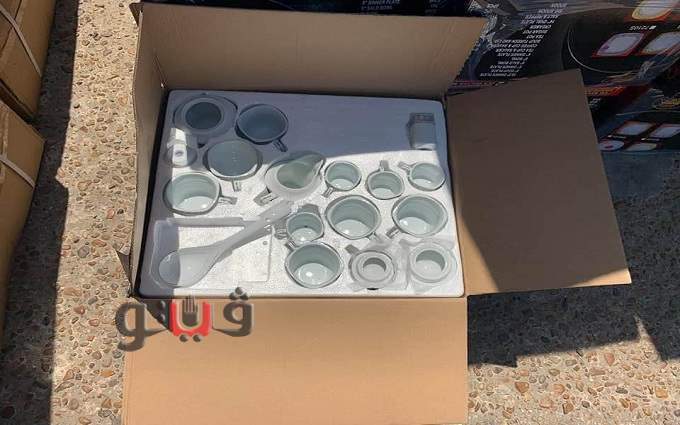 وبالفعل تمكنت اللجنة السالف ذكرها من الكشف و تبين وجود 6140 قطعة جريل من معدن ، و 472 طقم سفرة ، و72 قطعة لكل طقم ، و6441 طقم ملاعق وشوك بعدد 84 قطعة لكل طقم ، و 146 طقم شاي ، 24 قطعة لكل طقم و 936 طقم قهوة من خزف ، و 17 قطعة لكل طقم ، و 9672 طقم توزيع 6 قطعة لكل طقم ، و 12480 قطعة عبوات تعبئة ، و 4800 قطعة مج من خزف بالملعقة ، و 5112 طقم توزيع من لدائن بعدد 6 قطعة لكل طقم ، و 7200 قطعة يد من لدائن لزوم عبوات التعبئة ، والجميع غير مدرج بالبيان الجمركي وبالزيادة عن الوارد الفعلي بالمستندات .