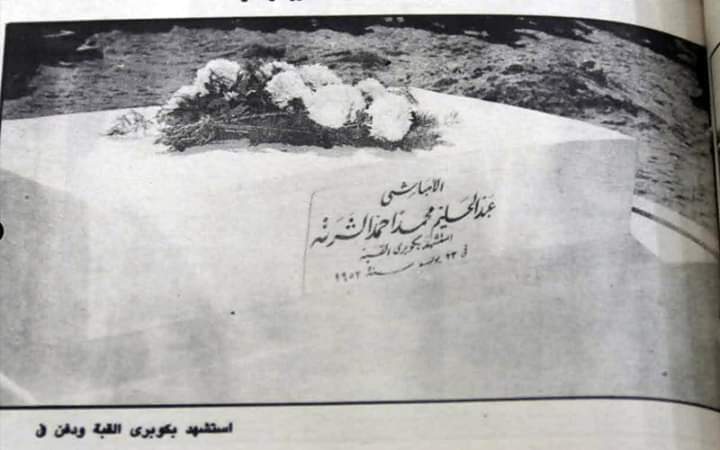 وبعد أكثر من سنة ونصف السنة سافر الرئيس محمد نجيب في رحلة طويلة إلى الصعيد امتدت من أهرامات الجيزة إلى خزان أسوان، رافقه فيها خالد محيي الدين.. وفي مكان مهجور من قرية "الشرتة" كان عليهما أن يضعا باقة من الزهور على قبر متواضع دفن فيه عبد الحليم الشرتة الذي استشهاده في عمر 24 عاما وكان متزوجًا وكانت زوجته حامل بابنه الذي ولد بعد دفنه بشهو".