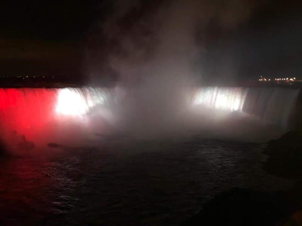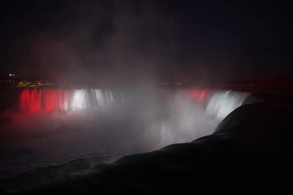فى سابقة هي الأولى نوعها، تزينت شلالات نياجرا الشهيرة عالميا بألوان العلم المصرى مساء أمس الخميس ٢٣ يوليو احتفالا بثورة ٢٣ يوليو المجيدة.