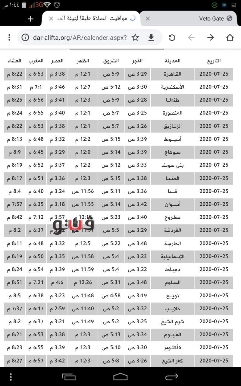ويوضح الجدول مواقيت الصلاة اليوم كالتالي: