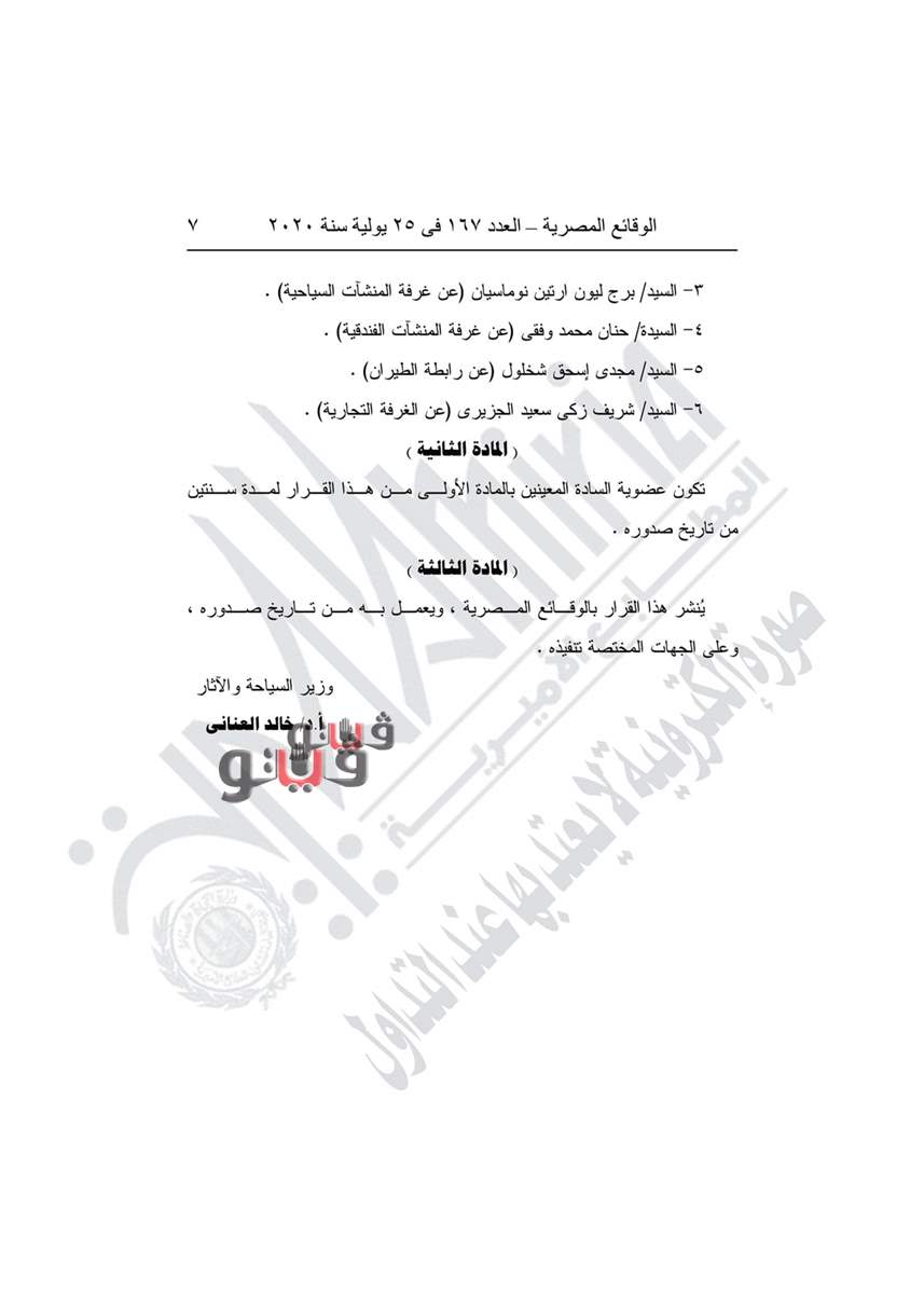 نشرت جريدة الوقائع المصرية في عددها رقم 167، الصادر في 25 يوليو 2020، قرار وزارة السياحة والآثار رقم 382 لسنة 2020، بشأن تعيين ستة أعضاء بمجلس إدارة الهيئة الإقليمية لتنشيط السياحة بالإسكندرية.