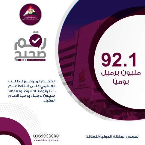 توقعات بارتفاع الطلب العالمي على النفط خلال العام المقبل | إنفوجراف السبت 25/يوليو/2020 - 06:08 م 7/25/2020 6:08:31 PM النفط أحمد رأفت شارك طباعة 18 حجم الخط شارك طباعة مركز المعلومات ودعم اتخاذ القرار رئاسة الوزراء مجلس الوزراء المصري الوكالة الدولية للطاقة سعر برميل النفط اليوم