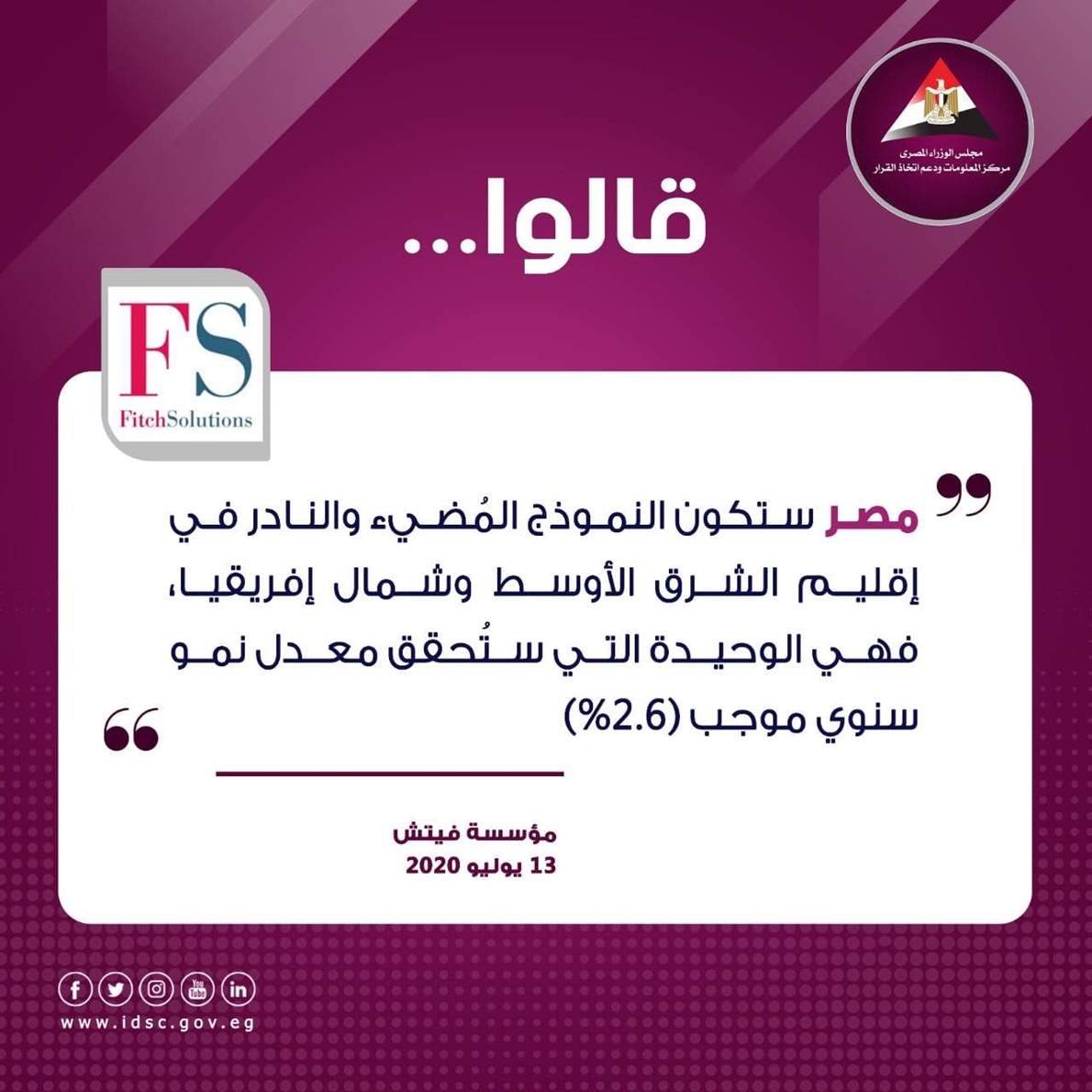النموذج المضيء والنادر.. أبرز ما ذكرته مؤسسة فيتش عن مصر | إنفوجراف السبت 25/يوليو/2020 - 06:28 م 7/25/2020 6:28:44 PM مؤسسة فيتش أحمد رأفت شارك طباعة 18 حجم الخط شارك طباعة وكالة فيتش رئاسة الوزراء مجلس الوزراء المصري قالوا عن مصر معدل النمو في مصر
