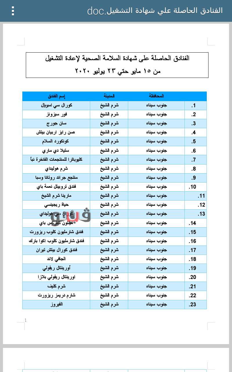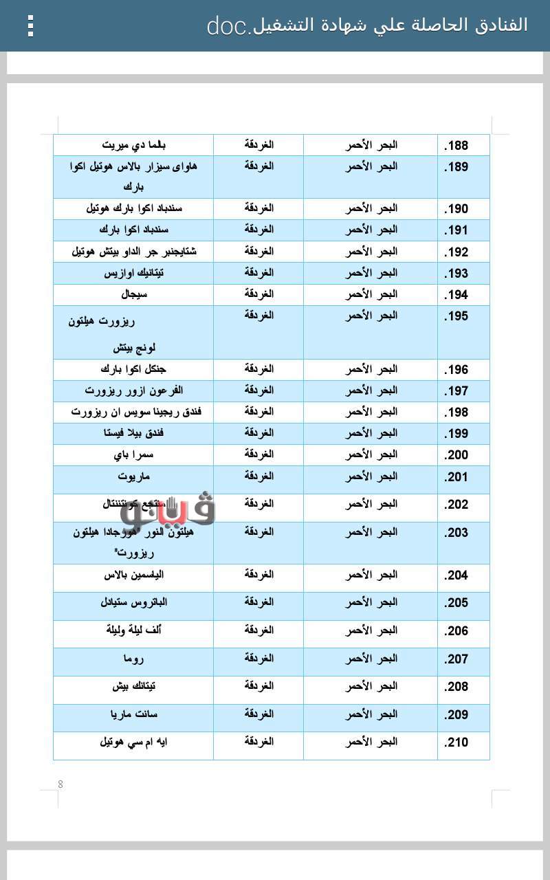 وأشار عبد الفتاح العاصي مساعد وزير السياحة والاثار للرقابة علي المنشآت السياحية والفندقية إلي أن لجان الفحص المشتركة، أقرت باستيفاء ٨ فنادق بمحافظة البحر الأحمر هي بريمير لو ريف، وبريمير رومانس، وغطس سومه باي، ودانا بيتش، وجولدن صن، وفلامنكو القصير، وفلامنكو ريزورت، وبانوراما بانجلوز ريزورت، و ٧ فنادق بمحافظة جنوب سيناء هما الوادي المقدس، ودانيلا، وكورال هيلز، والقمر البدوي، واميجو، وباندا، وصلاح الدين.