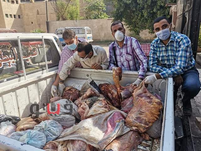 الجزارين بناحية قرية الحواويش دائرة مركز أخميم وتم اتخاذ كافة الإجراءات القانونية ومصادرة الكميات وجار استمرار حملات متابعة المجازر ومحلات الجزارة وأماكن بيع اللحوم قبل عرضها