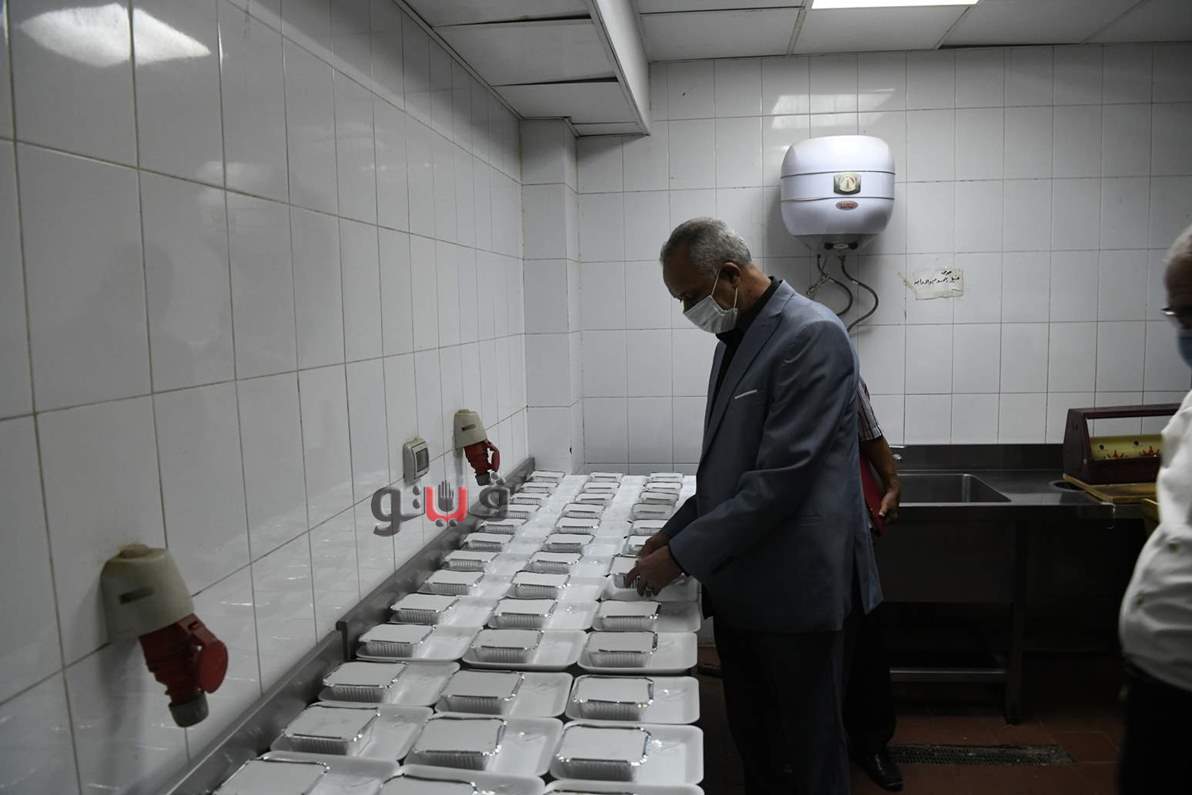 وبدأ سكرتير عام المحافظة جولته بتفقد المطبخ مشيرا الى أنه تم التأكد من إلتزام جميع العاملين به بإرتداء الكمامات والجوانتيات والحفاظ على مستوى النظافة كما تم التأكد من توزيع الوجبات المقررة للمرضى والعاملين طبقا للمقننات وتابع شلبى الجولة بتفقد معمل المستشفى.