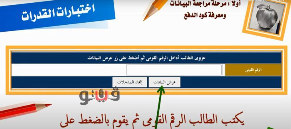 3- يقوم الطالب بإدخال الرقم القومي الخاص به ثم الضغط على زر عرض البيانات .