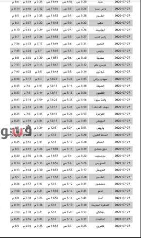 ويوضح الجدول مواقيت الصلاة اليوم كالتالي: