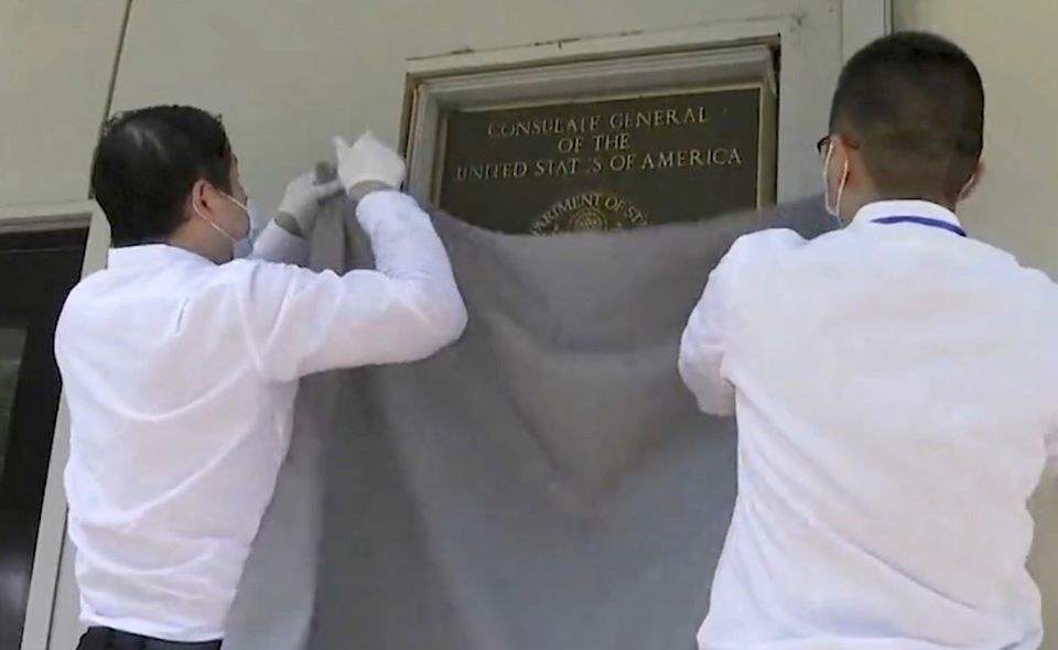 لحظة إغلاق القنصلية الأمريكية فى الصين