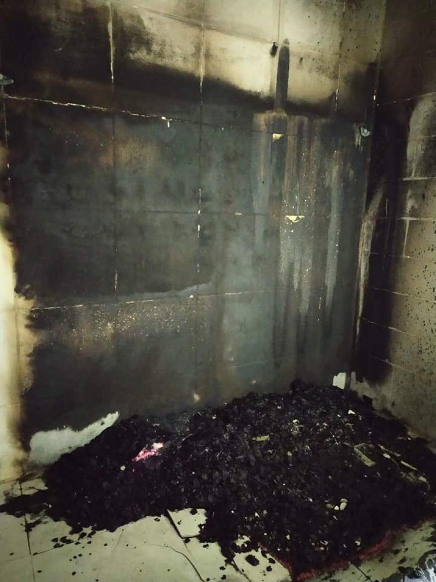 وأضرمت النيران في أجزاء من المسجد، وهرع الأهالي وأخمدوها، ووصلت طواقم الإطفاء إلى المكان، لاستكمال عملية اخماد النيران بالكامل حتى لا تأتي على المسجد بأكمله.