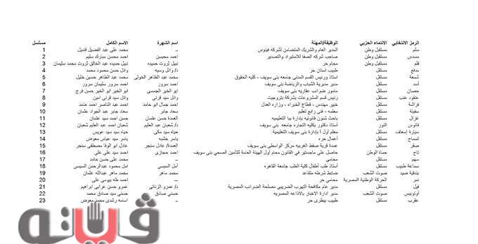 أعلنت الهيئة الوطنية للانتخابات برئاسة المستشار لاشين إبراهيم القائمة النهائية بأسماء المرشحين بالنظامين الفردي والقائمة لمجلس الشيوخ بعد انتهاء مرحلة الطعون الانتخابية أمام محاكم القضاء الإداري واستلام الأحكام الصادرة منها .