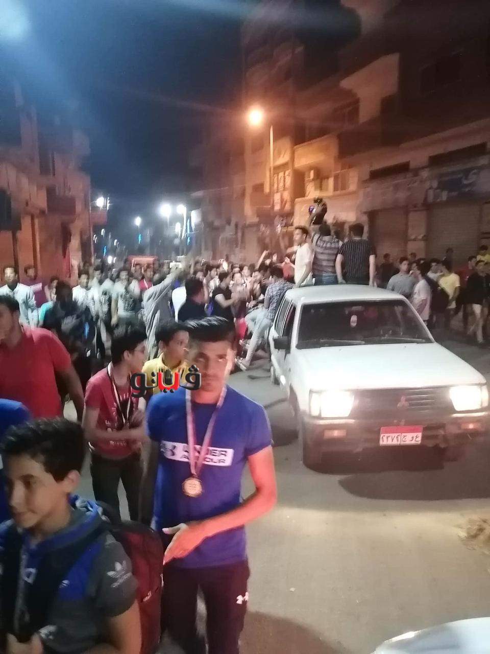 الفريق على مدخل القرية وقاموا بحمل اللاعبين والطواف بهم في شوارع القرية وذلك