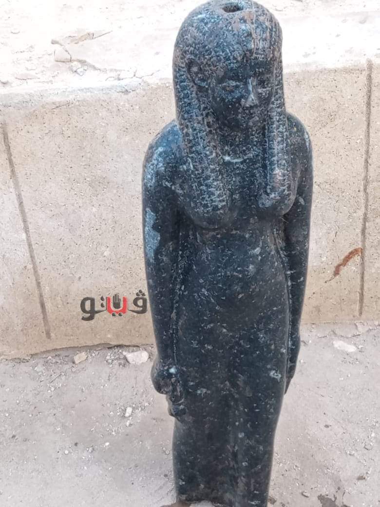 الحجرية المنقوشة والتماثيل الأثرية، وذلك أثناء أعمال حفائر الإنقاذ التى بدأها المجلس داخل قطعة أرض يمتلكها أحد المواطنين أثناء إقامة أحد المشاريع بالمنطقة، والتى تبعد نحو ٢ كيلو متر جنوب شرق منطقة ميت رهينة.