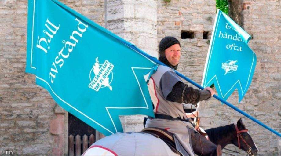 "فرسان القرون الوسطى" يظهرون في جزيرة سويدية للتوعية بشأن كورونا
