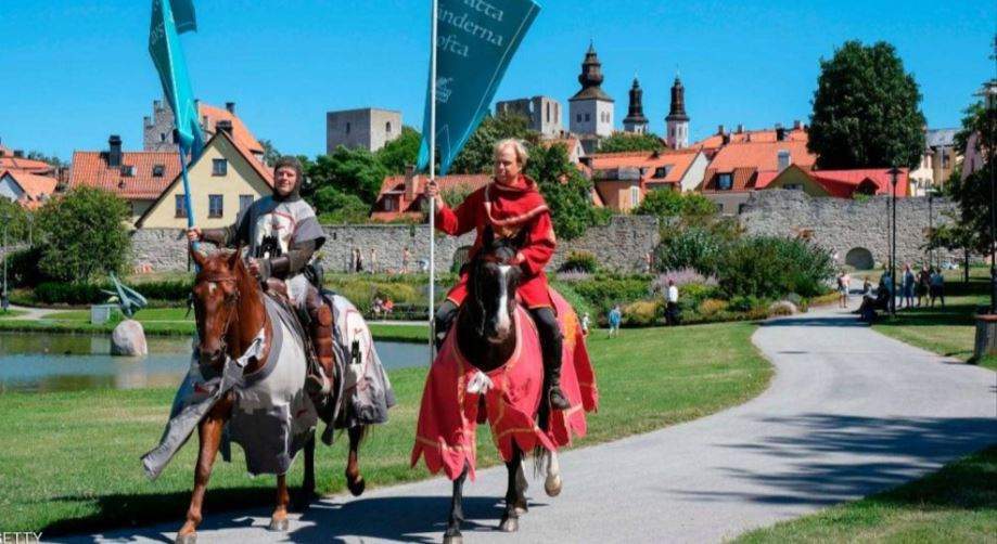 استعانت سلطات جزيرة سويدية بفرسان من القرون الوسطى للتشجيع على احترام التباعد الاجتماعي بين صفوف السياح.